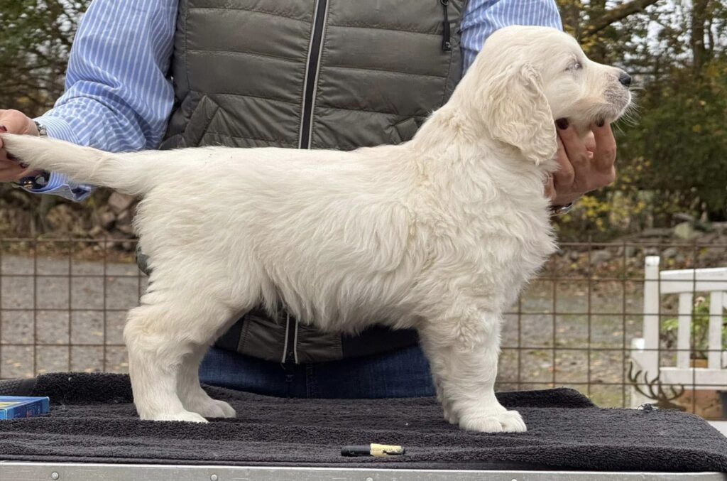 | 2024.01.04 Unofficial show in Bække | Laila Ager, DK Baby 1W, Baby BIR HP, Baby BIS1 | 3 months Old baby male, harmonious whole, good size for age, clear sex mark, well-cut head, friendly gentle expression, correct delivery, well-placed ears, good neck, well-backed shoulders and good upper arm, stands for age acceptable on the front, nice round paws, good topline , well angulated behind, moves nicely parallel and flowing from all sides, correct coat. Harmonious puppy and wonderful temperament. Certainly. |